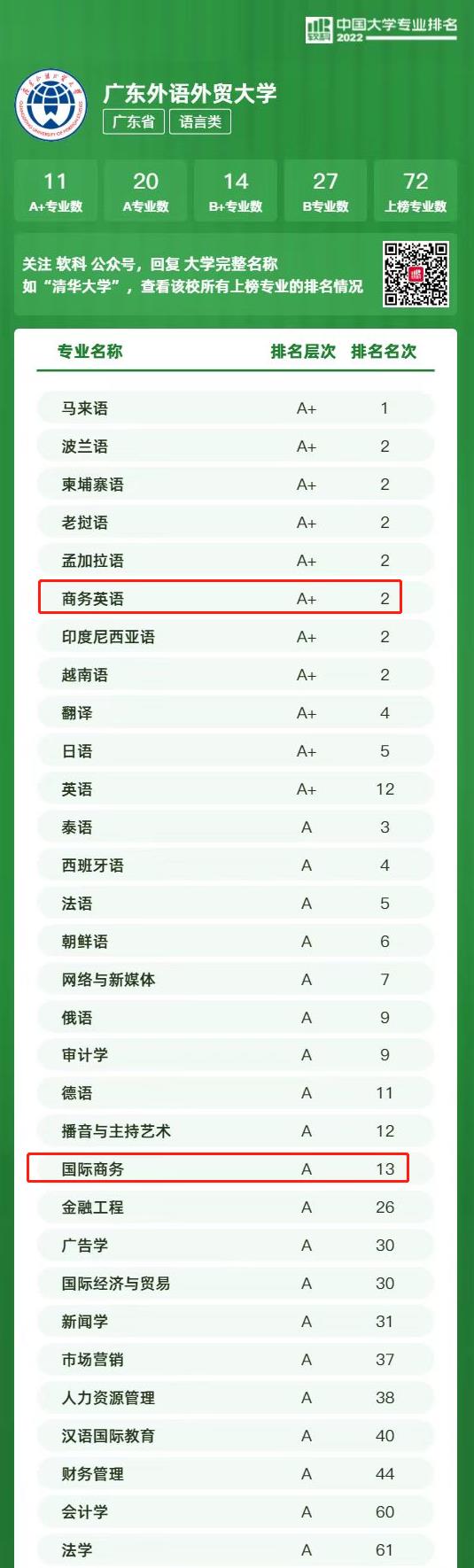 2022年6月19日,高等教育评价专业机构软科正式发布2022“软科中国大学专业排名”。beat365官网商务英语专业以排名第2再次获评A+,国际商务专业以排名第13再次获评A。