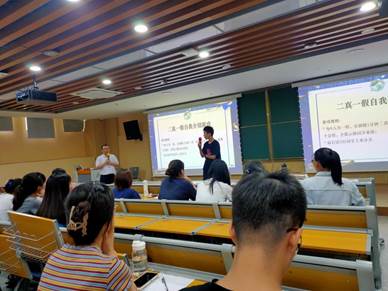 讲座开始之初,谢师兄让同学们分组玩二真一假自我介绍游戏,以此激发大家参与活动的热情,并邀请一些同学上台展示,很好地活跃了现场气氛。