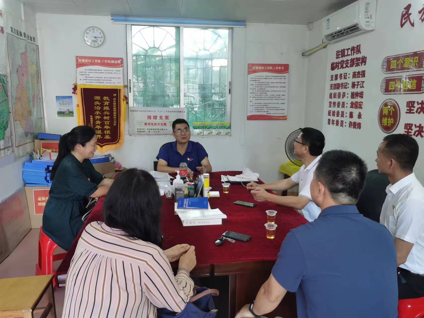 学院一行与驻镇帮镇扶村工作队进行了充分交流,广外驻王龙围村第一书记黄石胜向老师们介绍了工作队驻镇以来的工作情况,分享了自己在乡村振兴工作中的一些思考,指出学院要发挥自身优势,将乡村振兴工作和学校中心工作相结合,鼓励老师学生投身于乡村振兴这一国家重要战略之中,在参与乡村振兴之中提升学校干部党性修养,将对口帮扶地作为学校人才培养的重要基地。