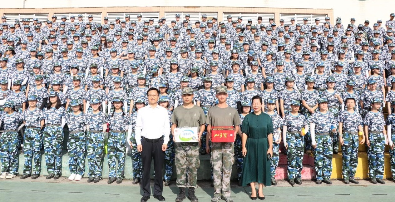 最后,学院领导向教官和学生送上慰问品,致以亲切的关怀和诚挚的问候,并合影留念。同学们倍受感动和鼓舞,表示将继续以“为校争光”为目标,以更加饱满的热情和昂扬的精神全身心投入训练,克服天气的炎热和身体的劳累,呈现出商英学子应有的精神风貌。