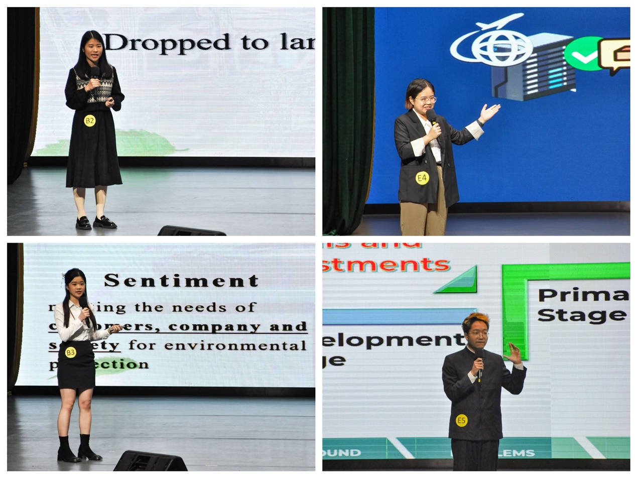 比赛过程中,参赛选手们在13分钟内从多方面全英解说各自队伍的调研成果,充分展示了beat365官网学子扎实的英语素养和国际化的视野。Eco-Glow队对莱倩化妆品有限公司展开调研,对其品牌知名度不高及绿色环保理念不足的问题给出了用小红书等新媒体进行推广和普及快闪店的创新性意见。Grinning队进行调研的公司是家居品牌oasis object,他们结合产品特点提出了家具回收计划,点明了绿色经济的主题。Rookie King队则在调研菜鸟公司后,针对其在绿色环保方面完成度较差的问题提出了例如回收包装盒、提供可生物降解包装袋等一系列解决措施。Ecotricity队关注当今新能源汽车浪潮,立足充电停车场企业eParking进行调研,提出增加充电桩和降低收费等建议。Hawks队立足航空产业发展和绿色经济的相关联性,对进行飞机拆解和回收的天弘航空科技公司进行考察,对设计失事飞机组件评估系统进行调查研究,充分展现了我国大国航天背景下学子充分关注国家大事的爱国情怀和为国家航空航天事业发展出一份力的决心。