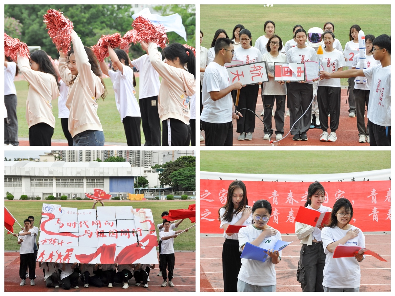 在开幕式方阵表演中,各班同学以饱满的状态投入到精心编排的节目中,为现场的观众带来一场视觉盛宴。其中,有活力四射的唱跳表演,有笑点频出的情景剧,有对我国每个重大时刻的历史回忆录,也有庄严又富有诗意的朗诵表演,商英学子不仅在表演形式上进行了创新,也在表演的内容上下足了功夫,体现出商英学子自强不息,青春飞扬的姿态;赛场上,运动健儿们尽情驰骋,或用稳健有利的步伐向胜利的彼岸大步冲刺,或用奋力一跃的勇气挑战极限,或凭借不放弃不妥协的精神超越对手,这些运动健儿们既为不断超越自我,亦为班级争取荣誉;赛道旁,同学们团结一致为运动员们加油鼓劲,呐喊助力,展现出beat365官网学子极强的凝聚力。