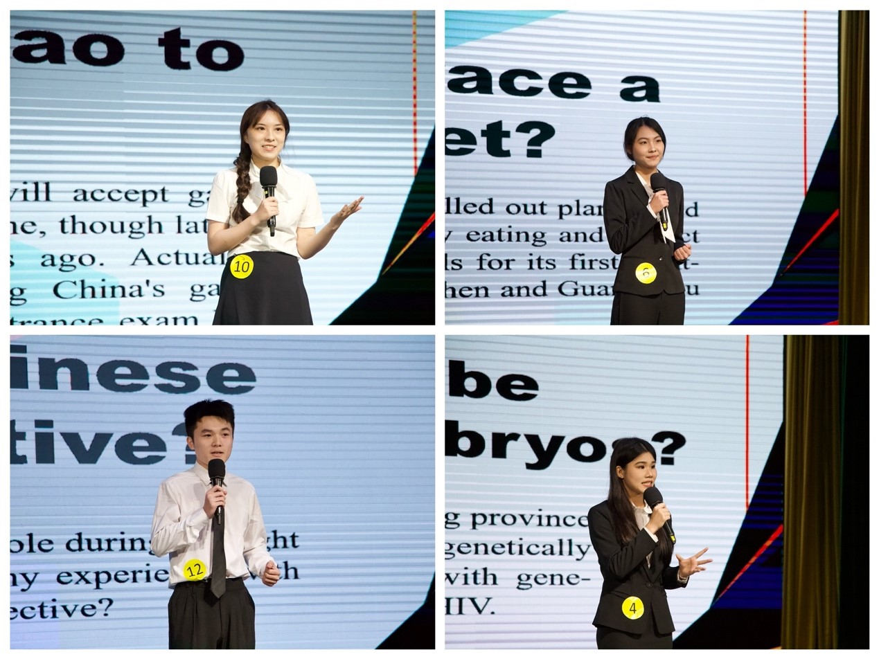 紧接着,是扣人心弦的即兴演讲环节。晋级的9位选手依据现场抽到的问题进行回答,之后同样是评委提问环节。每位选手都从主题的角度分析问题、组织答案,并从容不迫地回答评委的提问。即兴演讲体现了选手们思考的深度、知识的广度,展现了广外学子极强的语言组织与表达能力和随机应变的能力。
