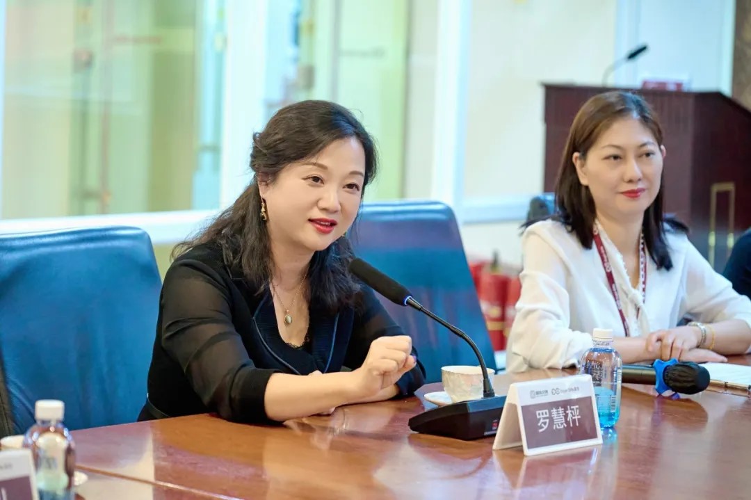 在座谈会中,罗慧枰介绍了广东盈浩的发展历程。她表示,广东盈浩作为广外校友企业,多年来与母校建立了深厚的校企合作关系:罗慧枰担任学院的客座教授、学院校友理事会副会长,还担任了2023级班级导师,给师弟师妹们提供更多指导,广东盈浩是学院商务谈判课程的移动课堂。与此同时,广外则连续21年为广东盈浩输送优秀的人才,广东盈浩的首批校招生全部来自广外,在盈浩,广外毕业生的占比在员工和管理层中均居首位。她期待通过此次共建实践教学基地为契机,推进校企合作高质量发展。