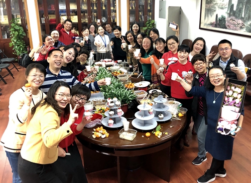 12月20日中午,由商英学院工会组织的2018年欢乐大食代主题年末美食活动在3教318隆重举行,学院老师积极参与,均拿出自己的看家本领,为参加同事呈现出许多特色美食,现场氛围异常火爆,大饱口福。本次活动是学院工会美食协会会长谢薇娜老师的关门之作,全院老师用美味向即将荣休的谢薇娜会长致以敬意和祝福。